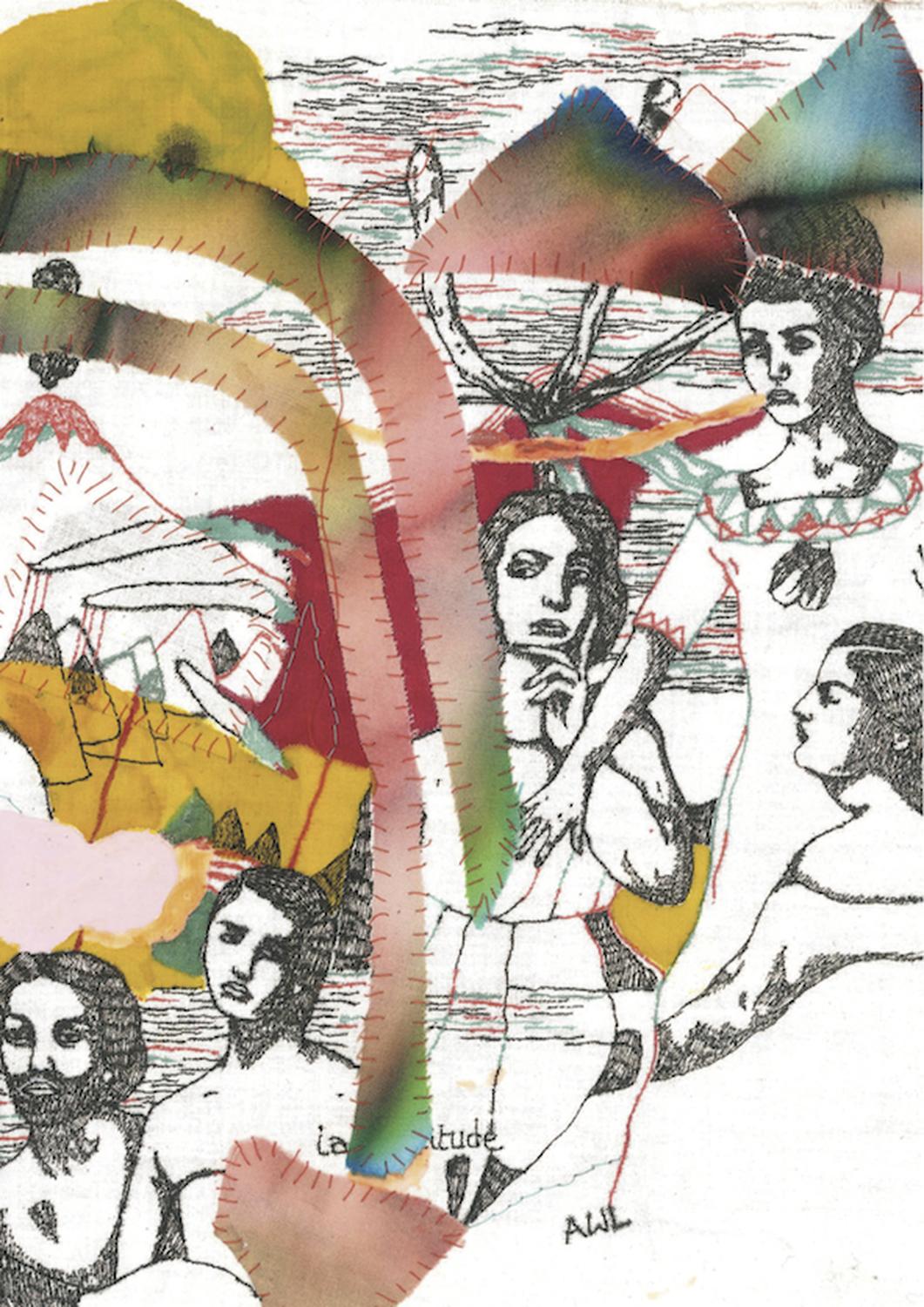 Aurélie William Levaux, born in 1981, eldest of a family of eleven children, draws and embroiders the whims of the living on the sheets of the dead.