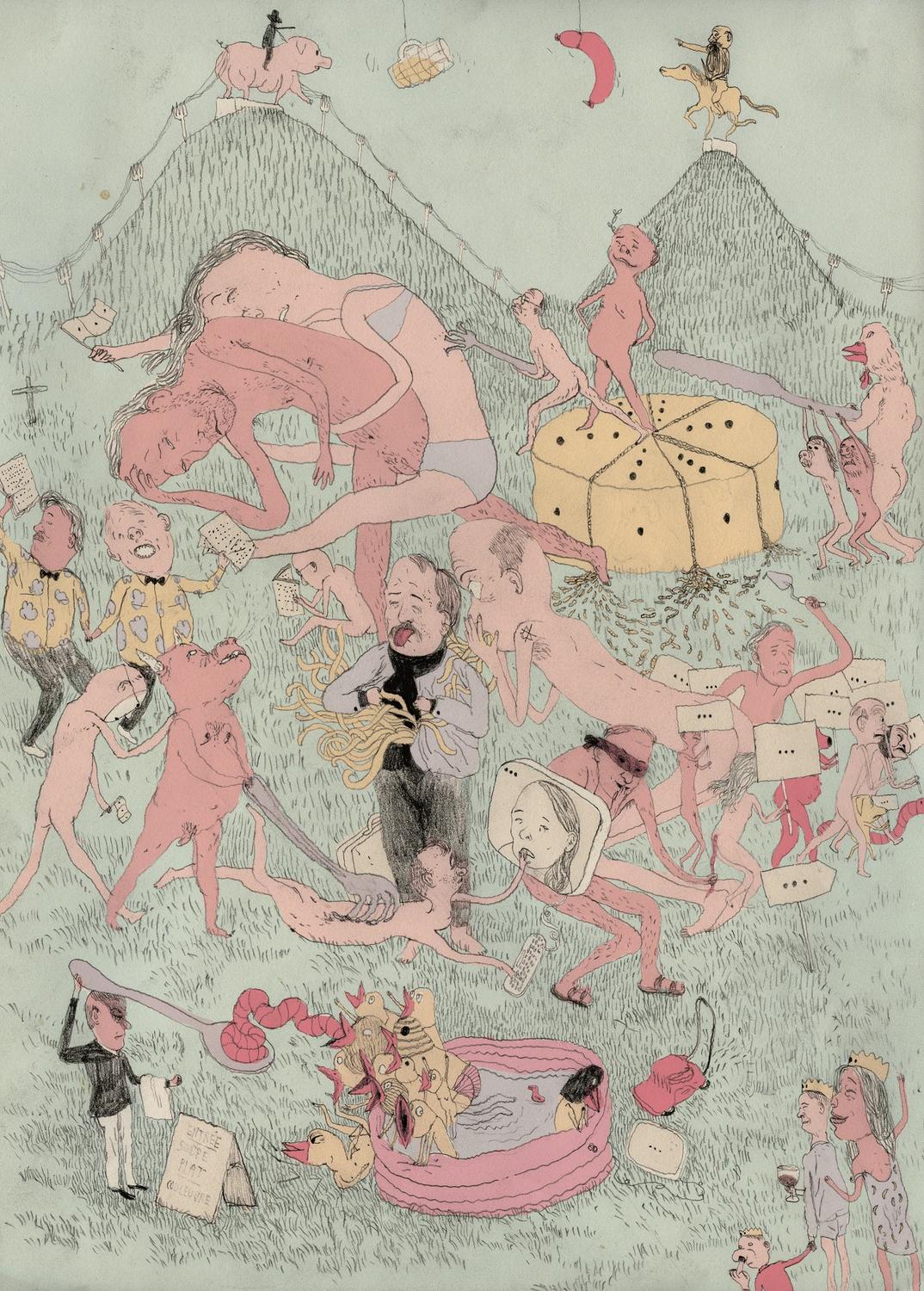 I do illustration, engraving, singing, video and animation. I made several books and animation films with Noémie Marsily. Recently I released an album in French on the Brussels label Humpty Dumpty Records.