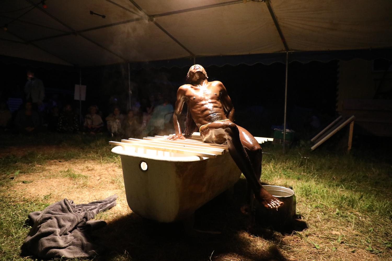 A healing ritual that invites the audience to join the artist in a moment of communion leads them to reflect on their own wounds.