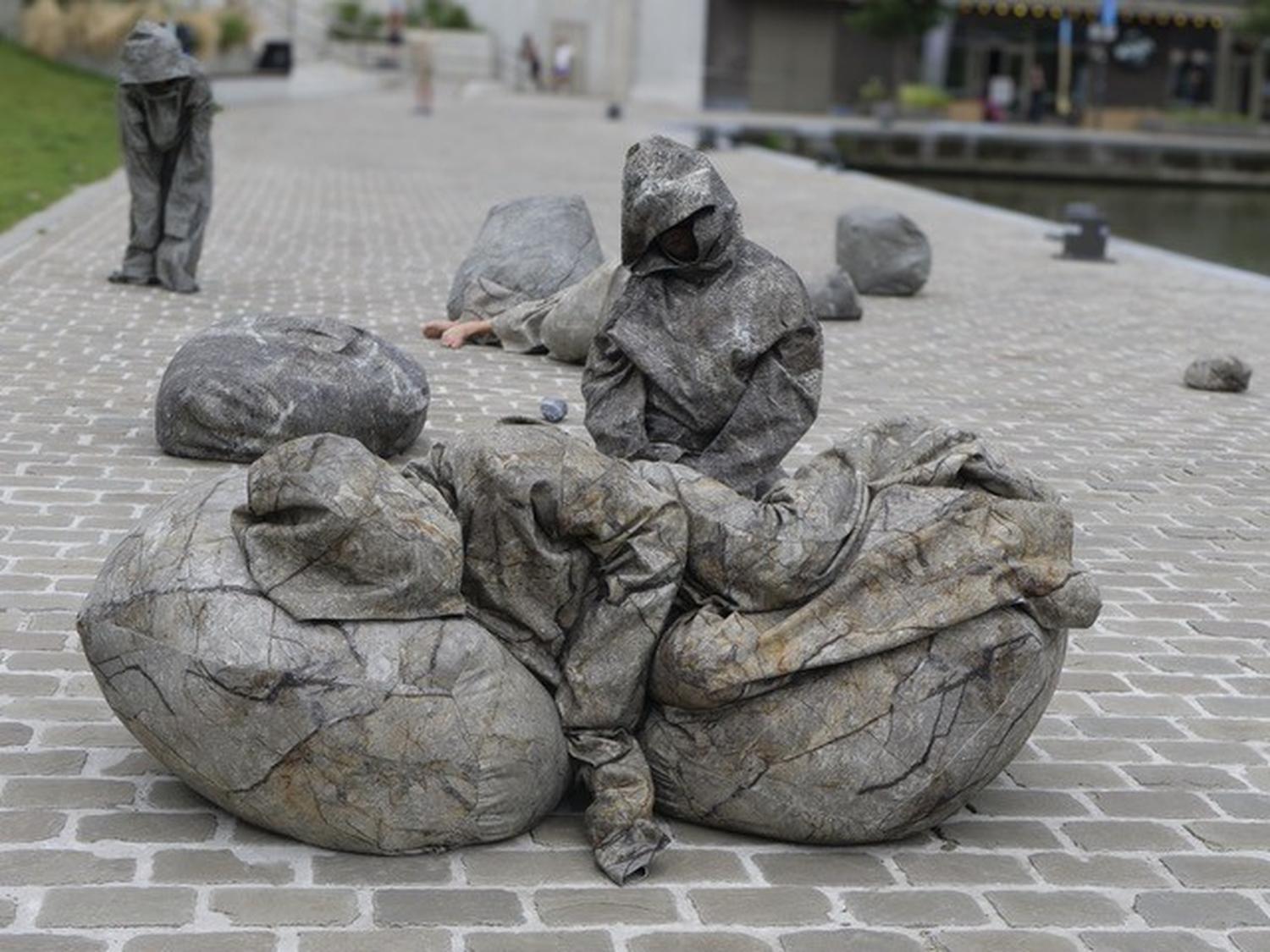 SLOWED LANDSCAPES is a project that explores the power of slowness by creating installations that are at once performative, in situ and participatory. The aim is to blend the human body into its environment: public space.