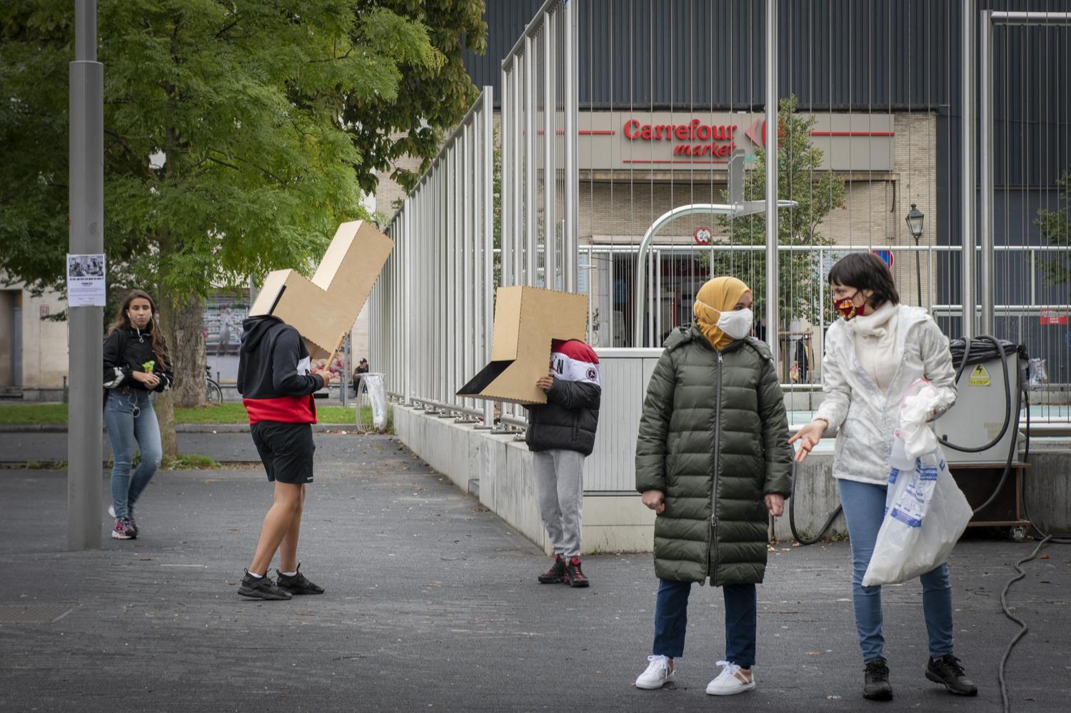 Montez sur une charrette roulante à miroir, formez un cercle dansant avec d’autres spectateurs ou restez sur le côté et regardez des gens chercher leur chemin avec des masques périscopiques. Vous êtes à la fois spectateur·rice et performeur·e.